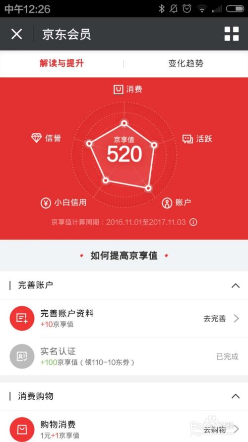 点击去提升后进入到京享值的解读与提升界面。