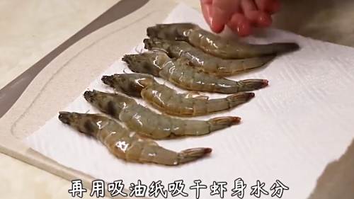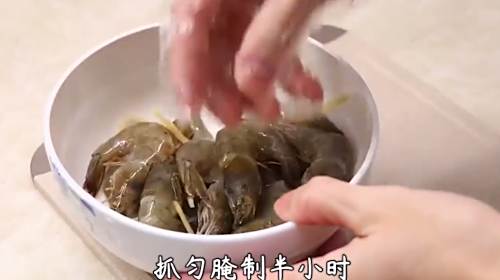 1剪去虾丝虾尖,开背,掰去虾线,加姜丝、少许盐和料酒,抓匀腌制半小时。