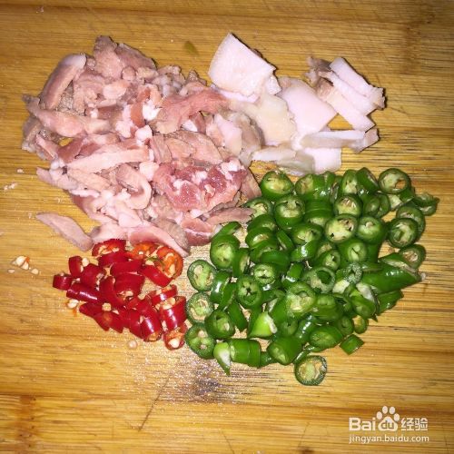 肉切成丝或片,辣椒,蒜,切好,备用。