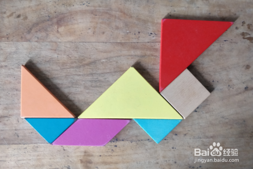 摆上正方形,放在黄色三角形右侧挨着,如图。
