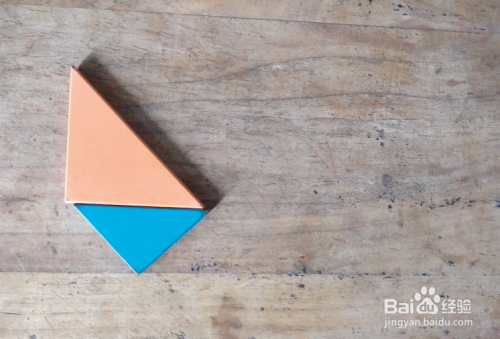 摆上橙色三角形,下面放上蓝色三角形挨着,如图。