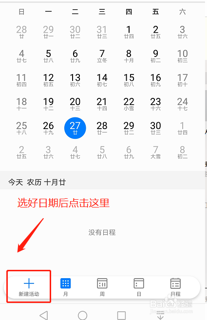 现在的我们每天的事情都很多难免有重要的事情会忘记,如果在手机上有个时间的提示就不会漏掉重要事情了,那么如何新建活动呢?