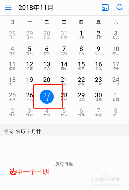 找到系统软件日历后,点击打开日历,在日历中显示当的年月日,选中一个重要事情的日期,我以当前的日期为例