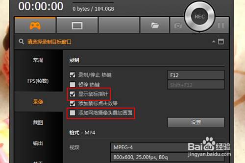 点击“录像”,如果录制的视频显示自己的鼠标,可以勾选“显示鼠标和指针”