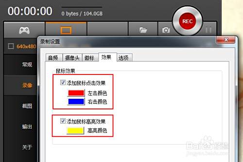 勾选其中的项目可以为鼠标添加特殊效果,比如点击左键的时候出现红色光圈
