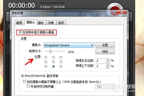 勾选“添加网络摄像头叠加画面”可以在视频中加入自己个人的视频画面