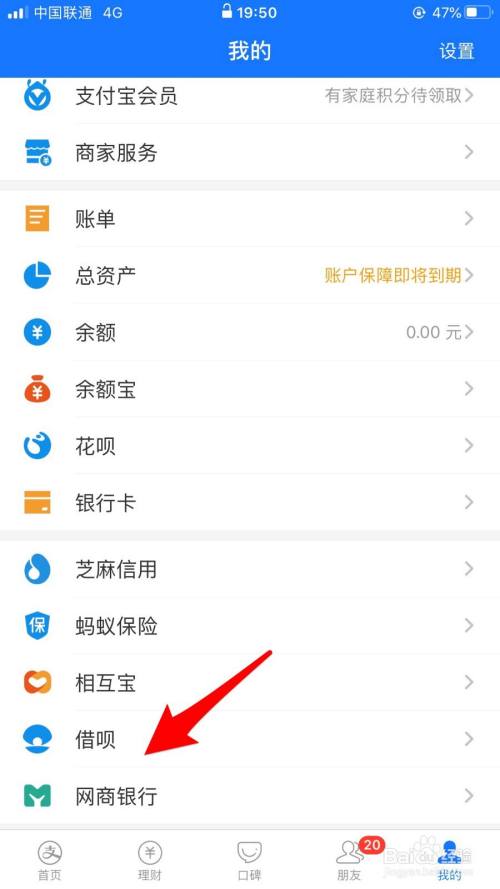 打开支付宝,点击右下角“我的”,找到借呗。