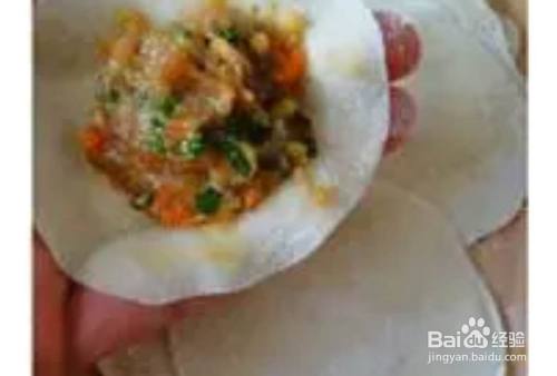 将羊肉放入容器中,打成肉末,加花椒水、胡萝卜、香菜搅拌均匀。