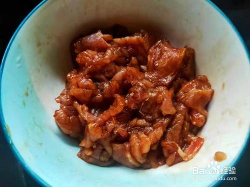 精瘦肉切成肉片,加入酱油,腌制15分钟以上。