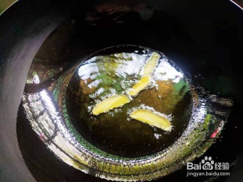 炒锅烧热加入菜籽油,油温烧辣,放入姜片爆香。