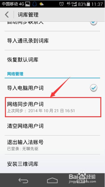 登录百度账户之后,就可以进行词库同步,将个人的输入习惯,特别是一些人名等同步至手机。此外电脑上的百度输入法的词库也会同步到手机中来。