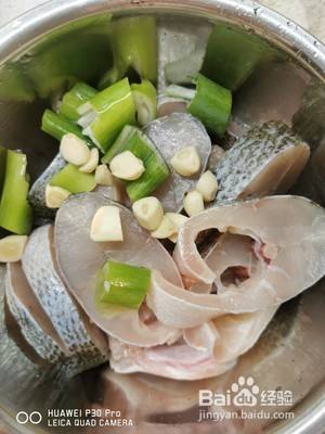 新鲜鲈鱼,洗净切小段,加入葱、蒜、黑胡椒粉、料酒、盐、生搅拌均匀腌制15分钟