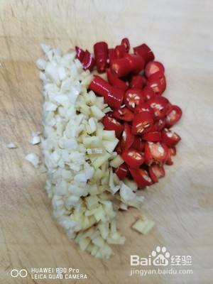 姜蒜小米椒切末备用