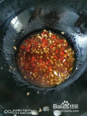 加入姜蒜小米椒沫,炒香