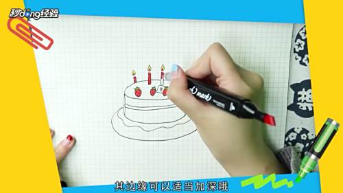 4再对蛋糕和蜡烛进行上色,其边缘可以适当加深。END