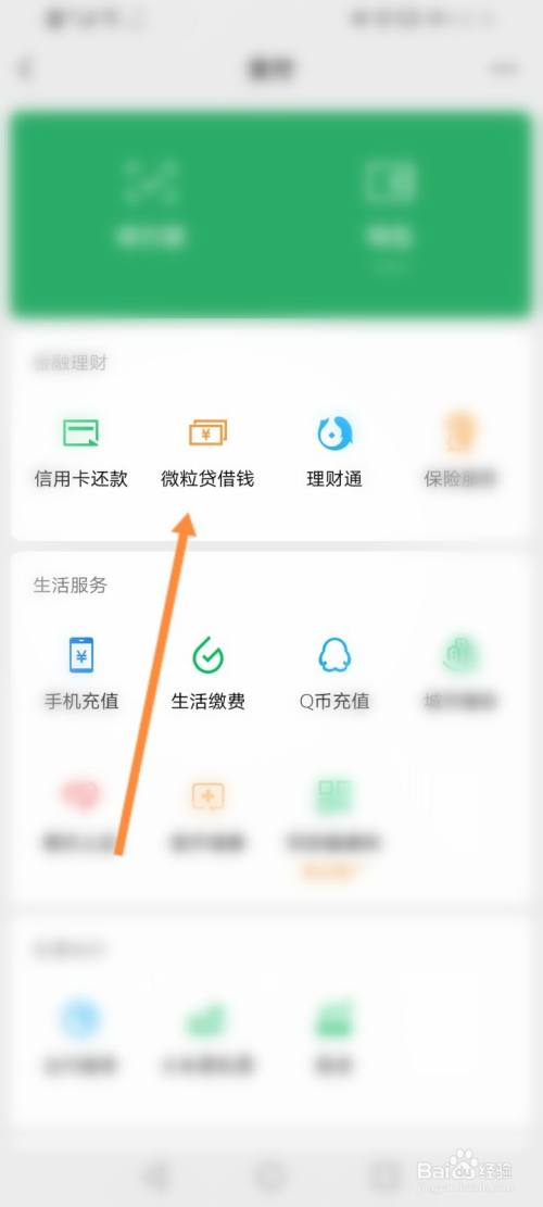 点击微粒贷借钱选项。