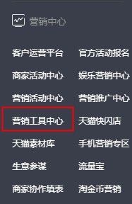 以天猫后台举例:我们选择商家中心-营销中心-营销工具中心。