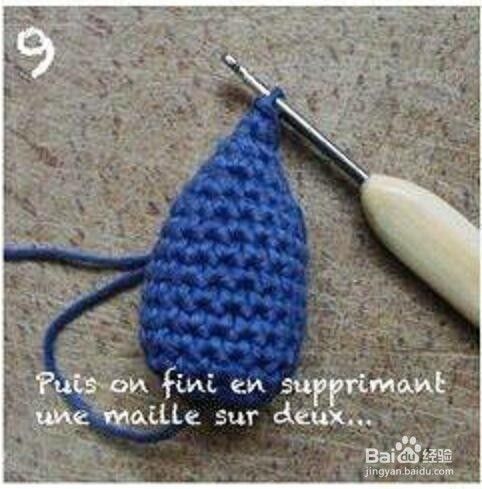 再织二个小半圆编上去做耳朵,加上眼睛和胡须。