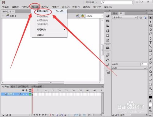 单击“插入”---->“新建元件”,创建一个影片剪辑元件“进度”。