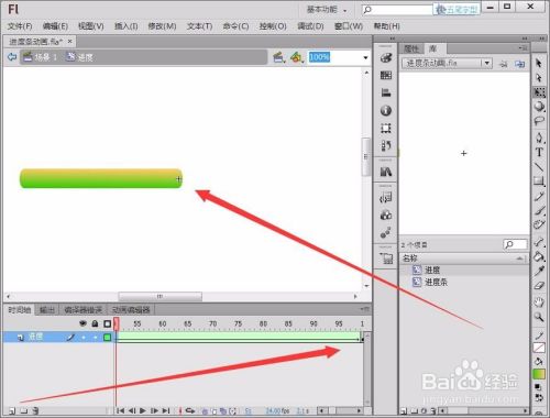 新建一个图层“进度”,将“进度”元件拖动到图层的第1帧。