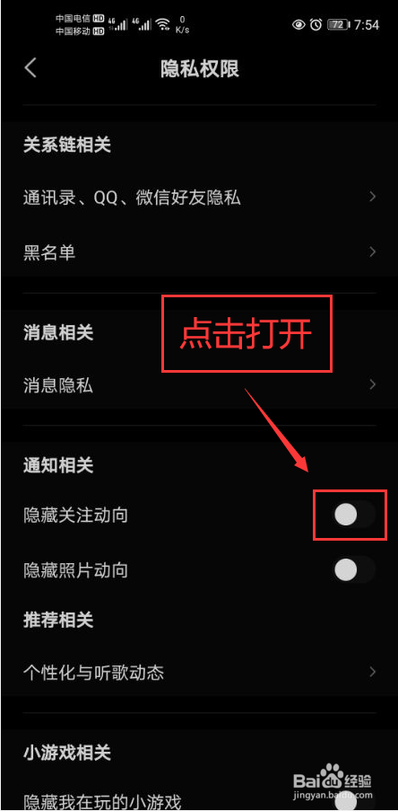 点击打开后,系统会自动保存设置,之后退出设置功能就可以了(图片中圈红的部分)