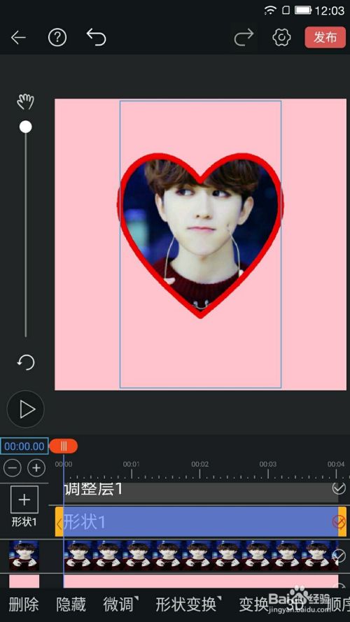 ②再添加一张坤坤的图片,给这张图片添加一个遮罩,同样是爱心,然后微调一下位置,大小与之前的形状一样。