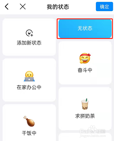 3、在我的状态中,选择无状态,点击确定。