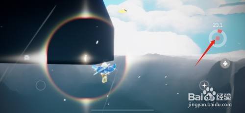 面向小山坡,右手按住腿,将光圈拉满,左手控制方向键往山丘方向推