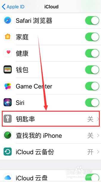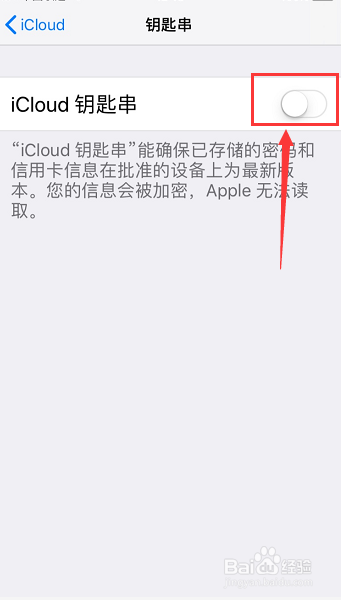 5.然后点击iCloud钥匙串后的【白色按钮】