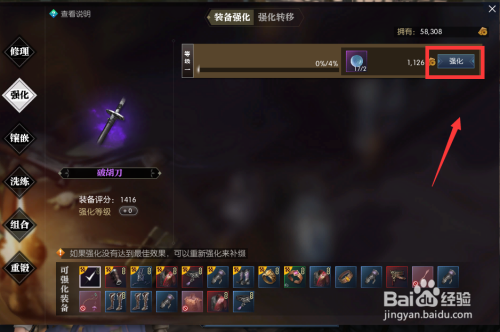如图,这是沫沫的30级紫武,点击将其放入强化窗口,点击【强化】。