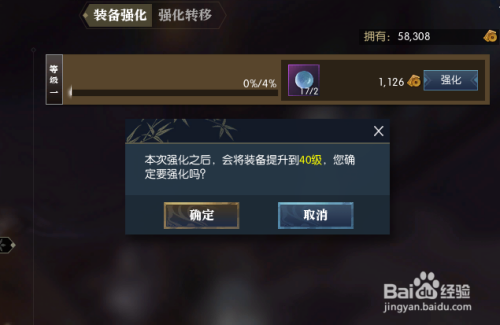 这时界面提示本次强化后,会将装备等级提升至40级,点击【确定】。