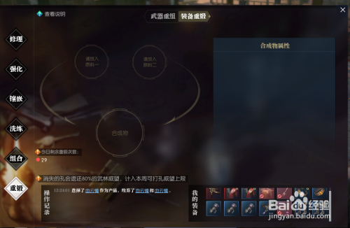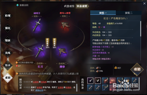 重锻省一点的组合可以用高级红装无限堆,紫武和红装组合出高概率红低概率紫。
