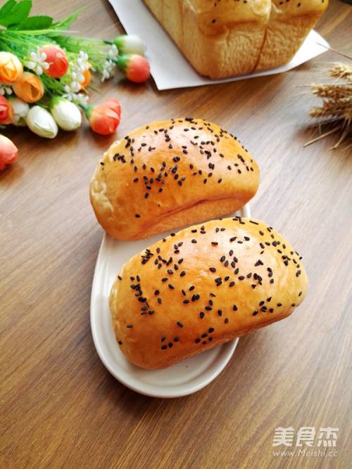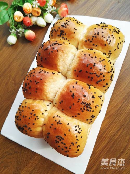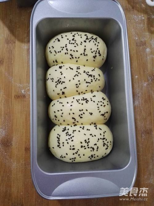 11醒好的面包坯,刷上蛋液,撒上黑芝麻