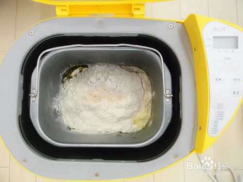 面包桶里先放入全蛋液,牛奶,糖,玉米油,盐,在筛入奶粉和面
