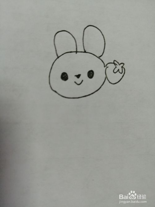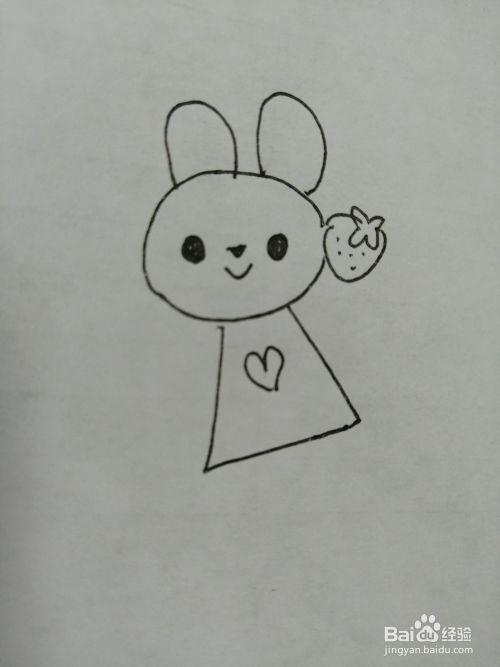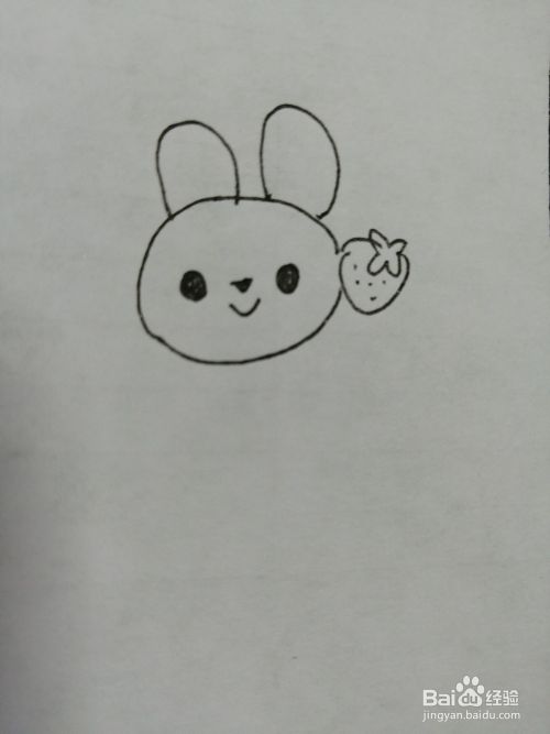 第四步,然后画出可爱的小兔子的脸部的草莓。