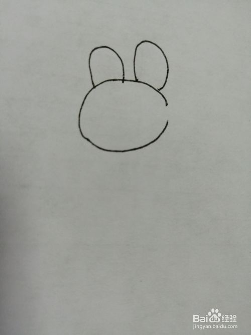 第二步,接着画出可爱的小兔子的两只长耳朵。