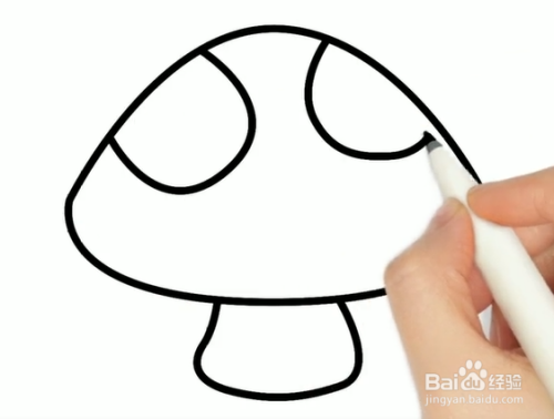 再在O的两侧画两个小一点的O,一个小蘑菇简笔画就完成啦。