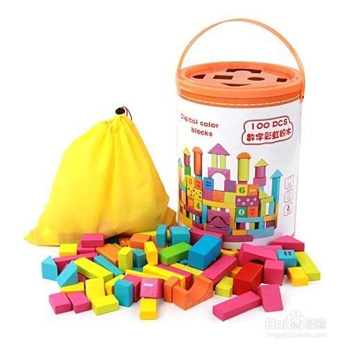 测试方法:示范,将积木投入筐内,鼓励宝宝去做
