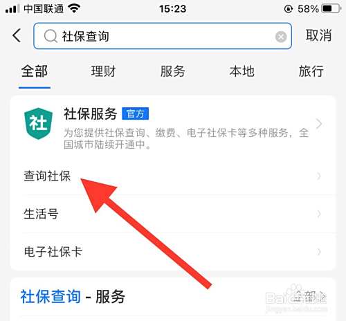 然后输入【社保】点击下边的【社保查询】。