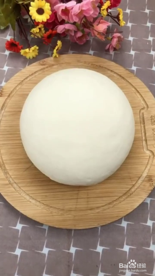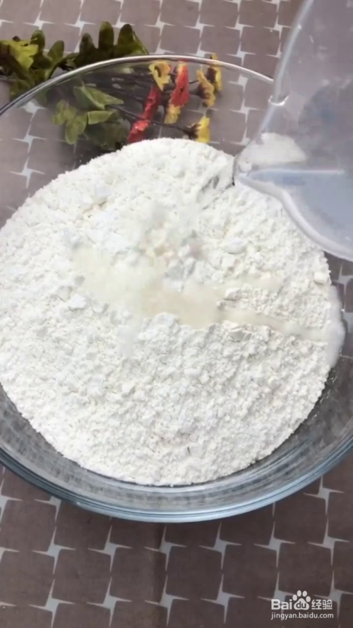 我们在面粉中加入盐,温水,搅成絮状后,揉成光滑的面团