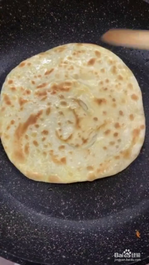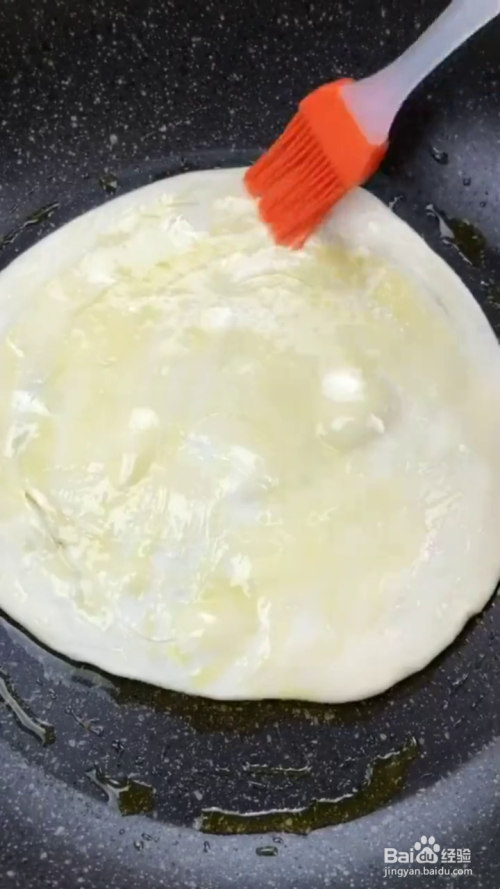 锅中刷油,放入油饼,表面刷上油,煎至两面金黄,即可享用啦