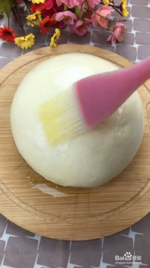 在面团表面刷上薄薄的食用油,用保鲜膜盖好,醒发三十分钟