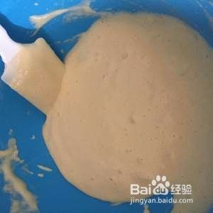 将混合好的液体倒入6寸蛋糕模具,或杯仔蛋糕的纸杯中,预热烤箱160-170摄氏度,烤15-20分钟,直至蛋糕表面金黄