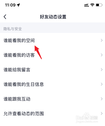 选择上方的谁能看我空间选项。