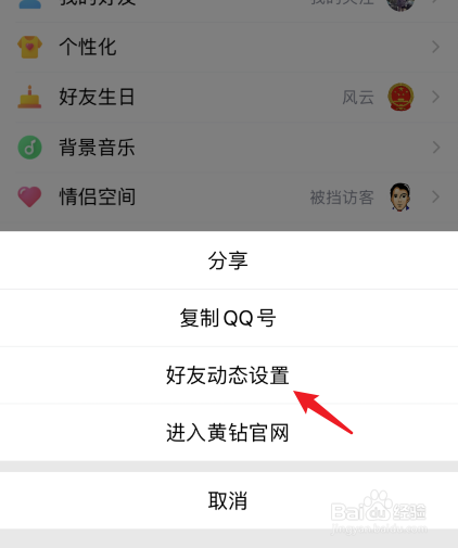 点击好友动态设置