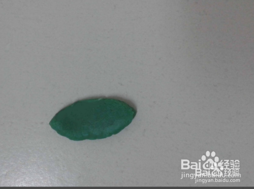 下面做豆角,先用深绿色搓成中间宽、两头尖的条,再按扁,当豆角皮。