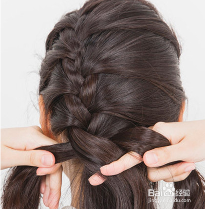 最后将辫子编织到发型,再用橡皮筋固定就可以完成了。