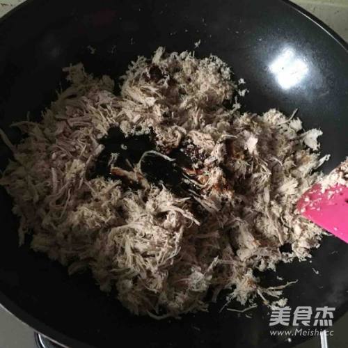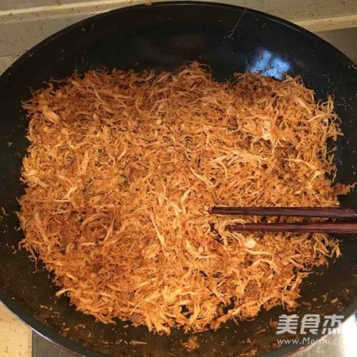 用筷子翻拌焙干即可(喜欢肉松绒状的入料理机打一下即可)