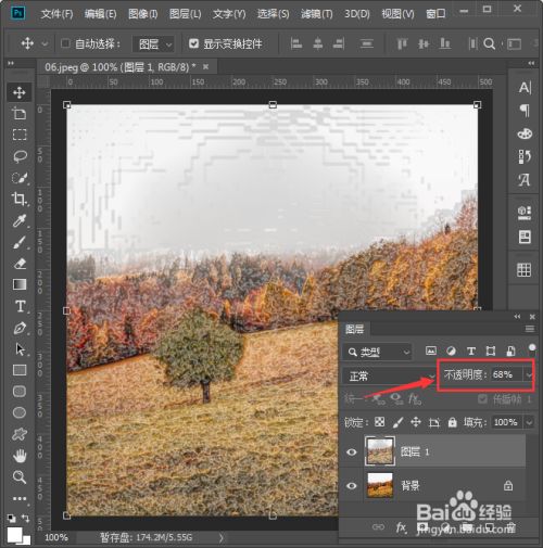 最后,我们图层1的不透明度调整为【68%】就完成了。