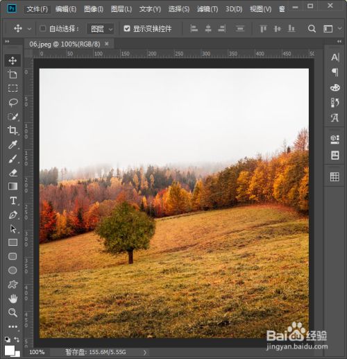 我们用ps打开一张需要添加塑料包装效果的图片,比如:秋天的风景。